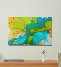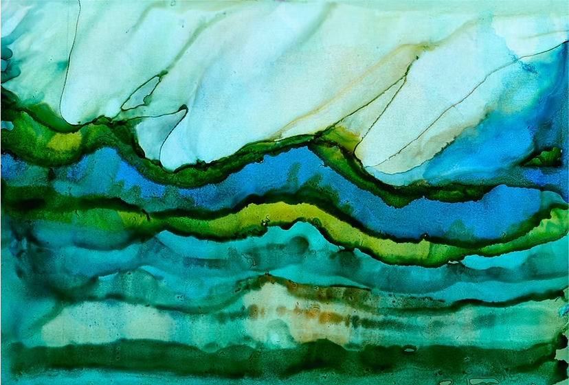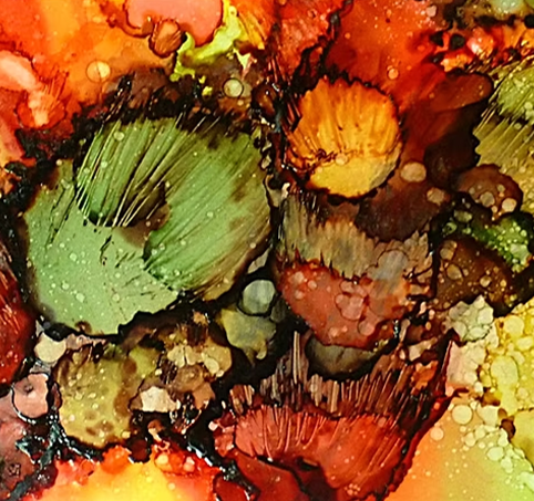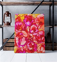 I paint with alcohol inks on yupo, a synthetic paper. The vibrant inks are joyfully unruly. Coaxing and cajoling the inks into fanciful waves, florals and other beguiling shapes is both the challenge and the reward.